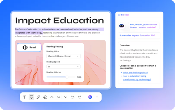 - Características de personalización. Como decíamos antes, siempre es buena idea ajustar características como la velocidad de lectura o el volumen del sonido. Wondershare PDFelement cuenta con estas opciones de ajuste para que tu lectura sea exactamente como quieres.